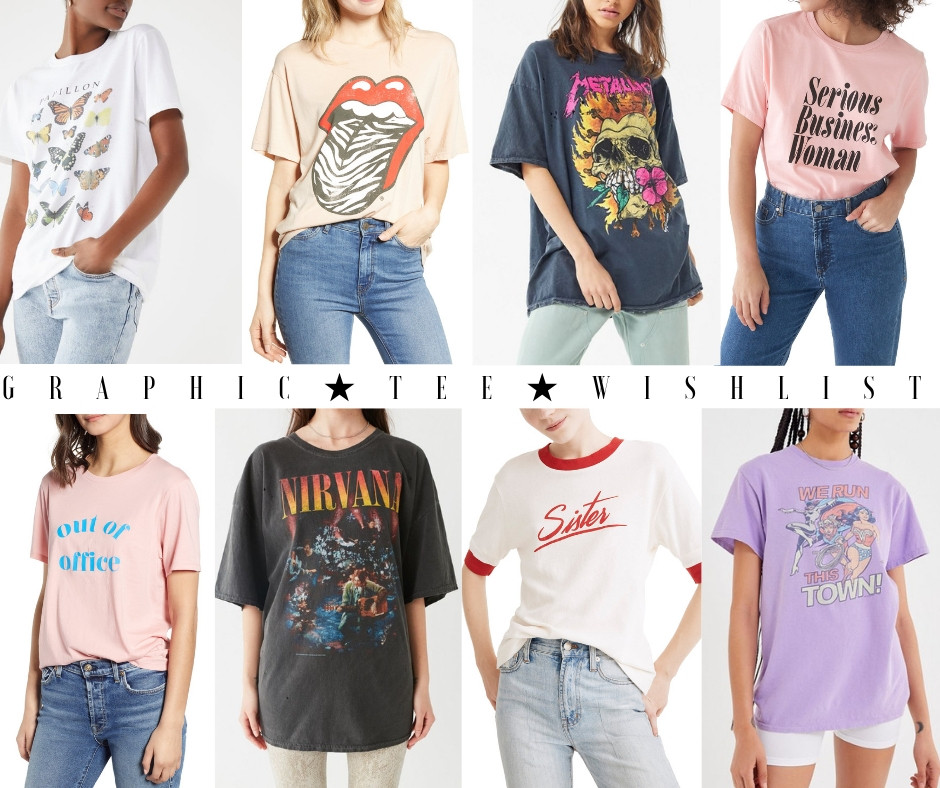 OKKKKURRRRR, I just wanted to do a quick round up because y’all know I am a graphic tee junkie. I used to never in a million years think I would spend 30 something dollars on a t-shirt but now that I realized how much on a graphic tee junkie I am and I wear the heck out of it, I can totally justify it. I own the Nirvana one right now and the Metallica one looks like it’s sister so it’s a must.